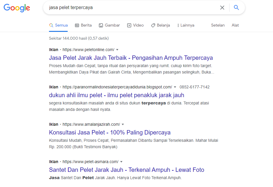 Rangking iklan adalah urutan iklan kita dalam hasil pencarian di search engine google di bandingkan dengan iklan yang lain. Contoh kata kunci jasa pelet terpercaya, posisi iklan “1", berarti yang ditampilkan adalah pertama tanpa iklan lain di depannya. Contoh peletonline.com ada diposisi pertama